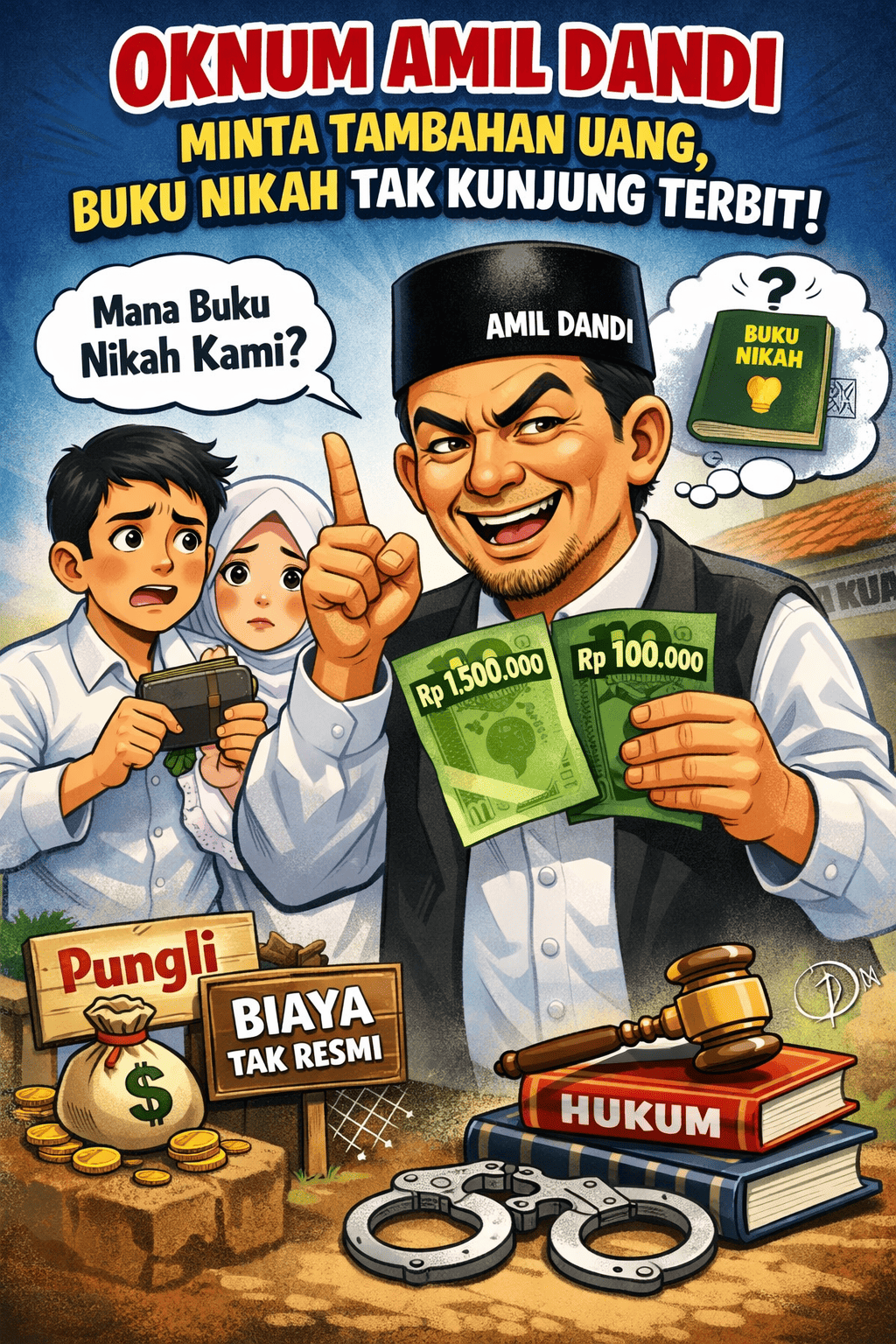 Ironisnya, hingga memasuki tahun 2025, buku nikah kedua mempelai belum juga diterbitkan. Kepada pihak keluarga, oknum amil Dandi berdalih bahwa biaya Rp1,5 juta tersebut dibebankan karena usia mempelai perempuan masih di bawah umur.