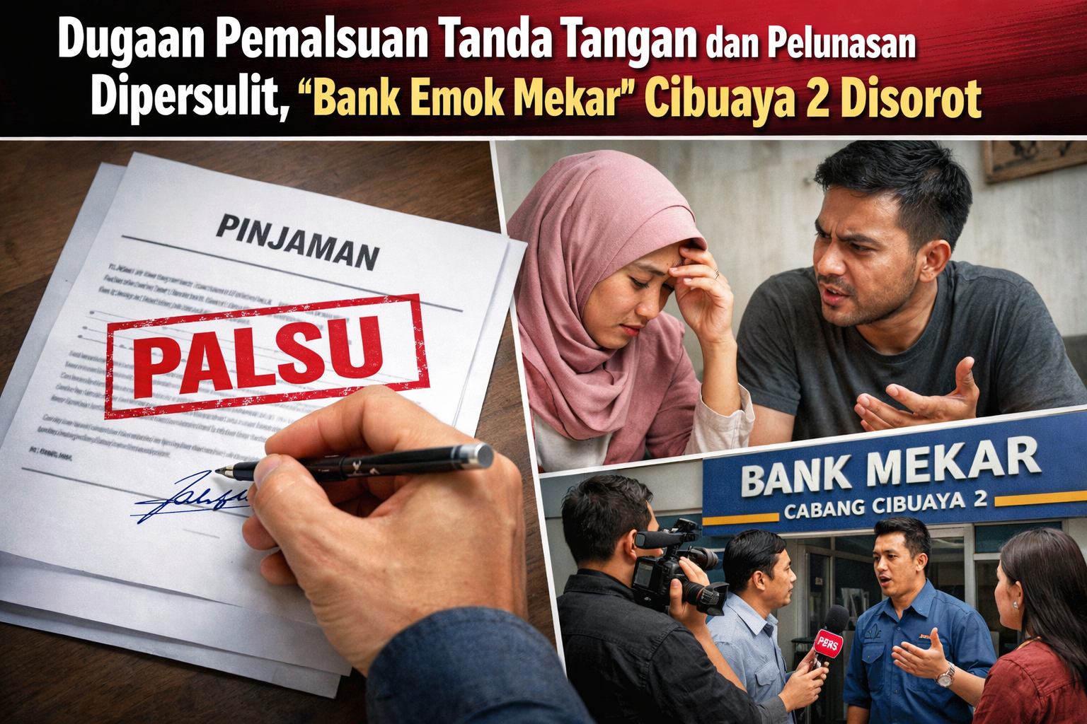 Kali ini, sorotan tertuju pada pihak yang disebut masyarakat sebagai “Bank Emok Mekar” Cabang Cibuaya 2. Seorang suami nasabah mengaku pinjaman yang dicairkan pada istrinya tanpa sepengetahuan dirinya, bahkan terdapat dugaan tanda tangan yang tidak dilakukan oleh dirinya.