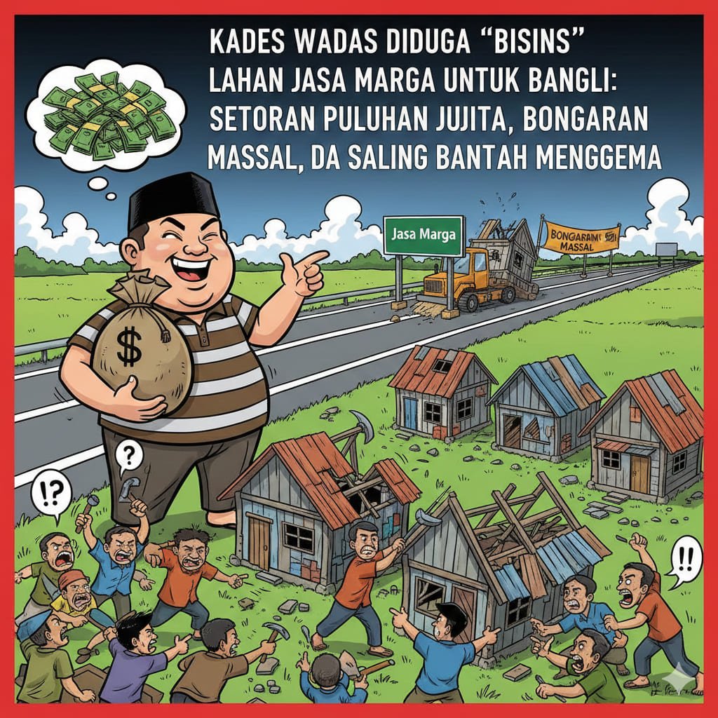 Karawang | Nusantarapostnews.com – Dugaan praktik penyewaan lahan milik Jasa Marga oleh Kepala Desa Wadas, Junaedi alias Jujun, kepada sejumlah pemilik bangunan liar (bangli) di jalur akses Tol Karawang Barat kembali mencuat. Informasi tersebut diungkapkan langsung oleh salah satu penyewa berinisial A, yang mengaku diminta membayar hingga Rp10 juta per tahun melalui pihak desa.
